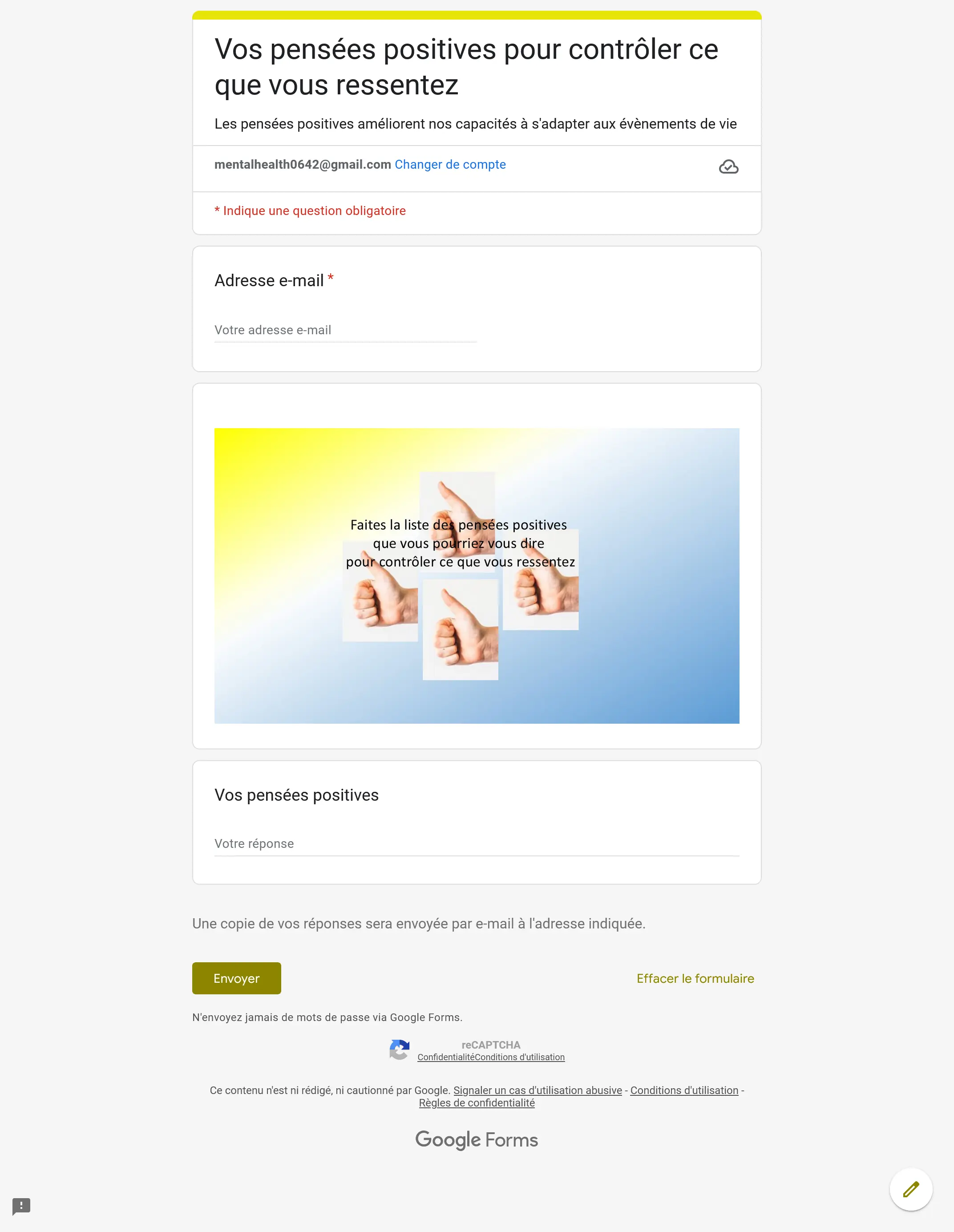 Vos pensées positives pour contrôler ce que vous ressentez
